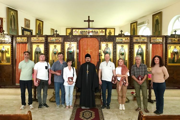 A la chapelle Saint-Ignace-le-Théophore, l’higoumène Arsène (Sokolov), représentant du patriarche de Moscou et de toutes les Russies auprès du patriarche d’Antioche la Grande et de tout l’Orient, a accueilli le groupe et leur a parlé de l’histoire de la Représentation.